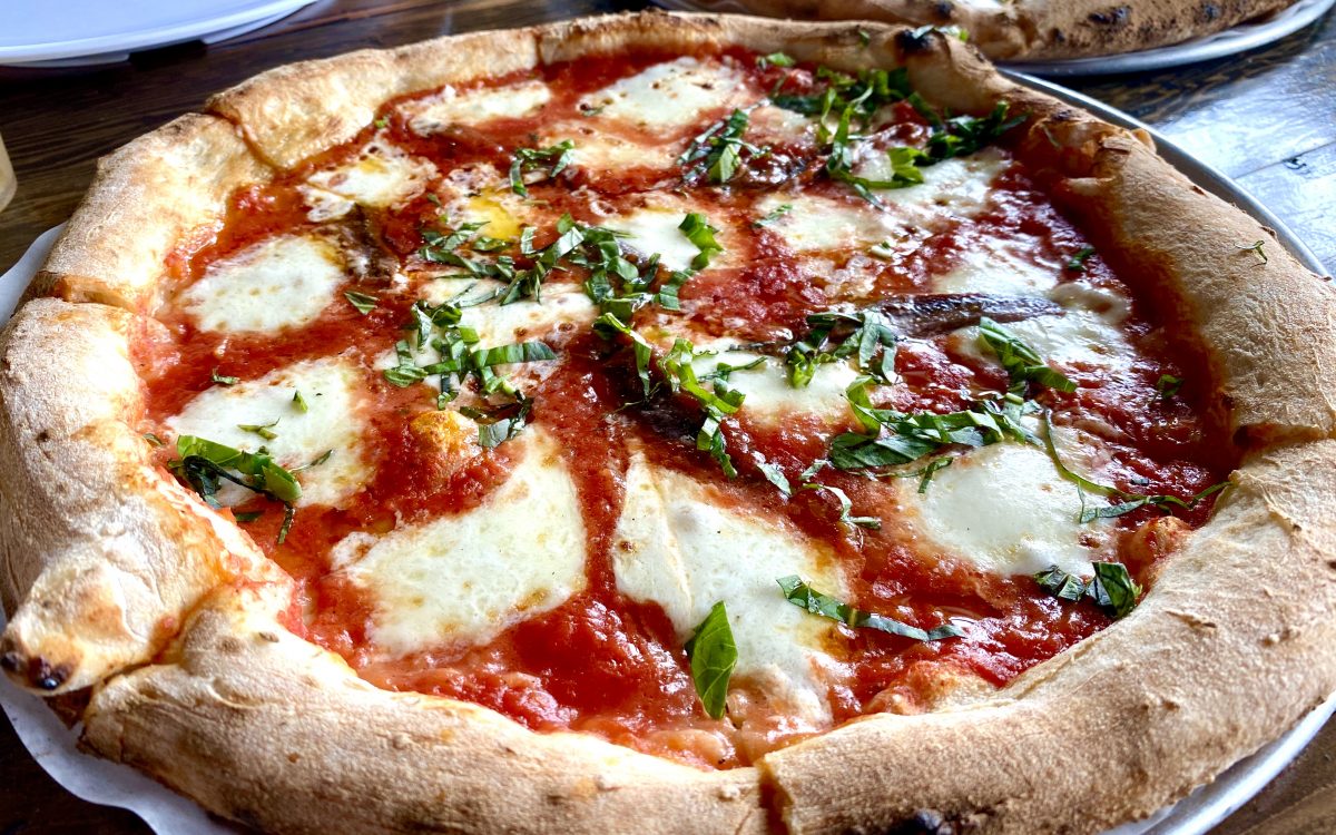 Masa Tierna y Delgada,Salsa de Tomate Natural,Queso Mozzarella, Albahaca fresca y jamón