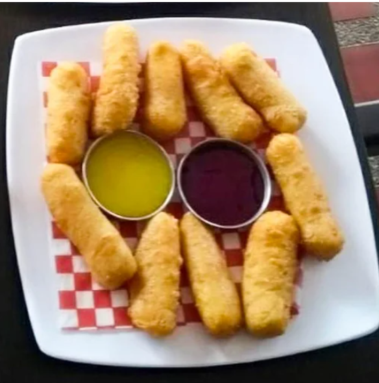 20 Unidades de palitos rellenos de queso grande con mermelada de piña o mora, incluye una mermelada.