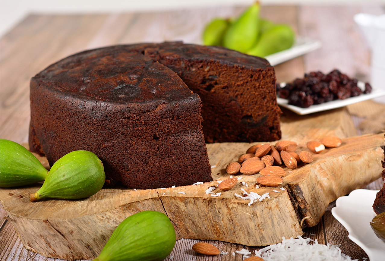 Exquisita y tradicional torta envinada Las Negras, con la más deliciosa mezcla de pasas, brevas y nueces.