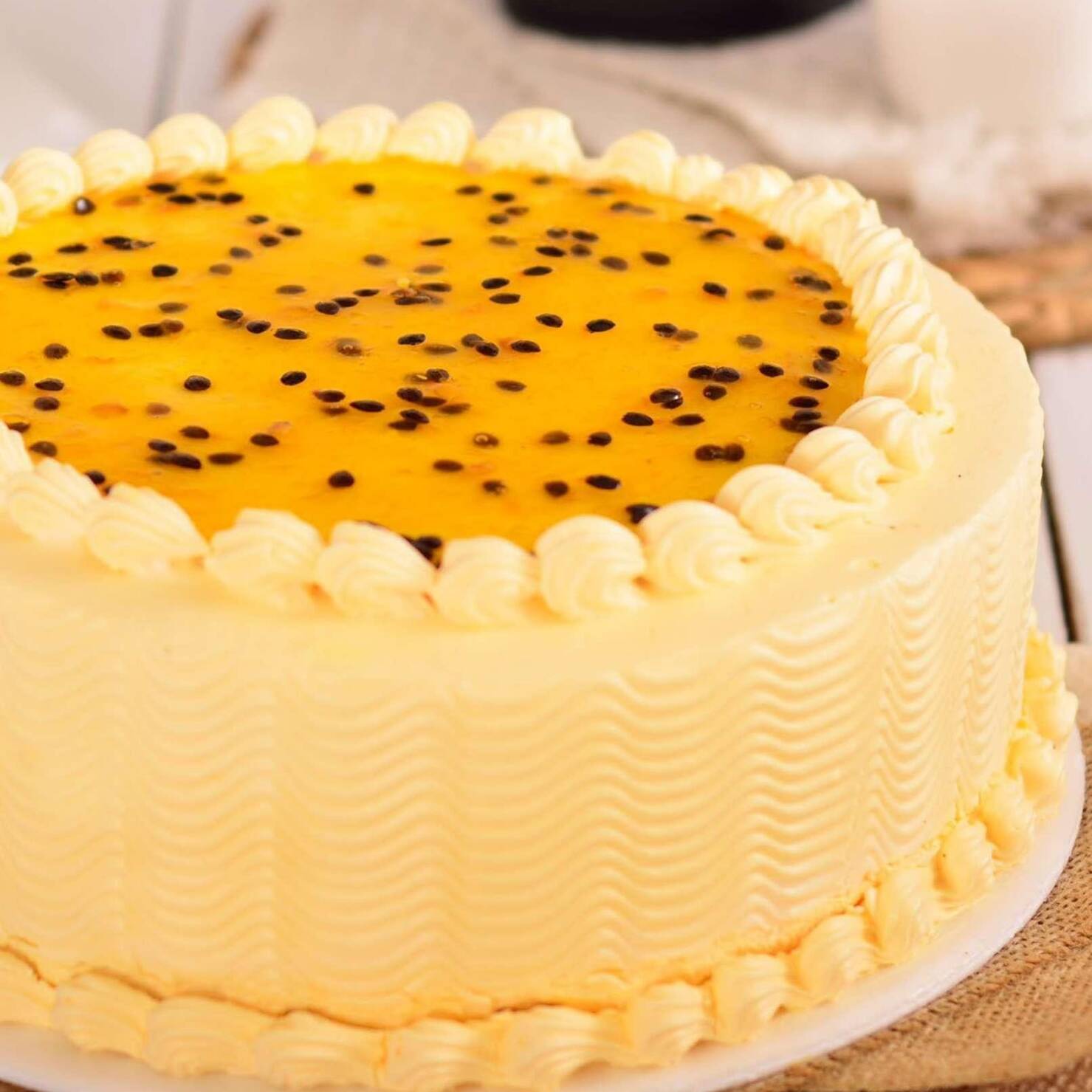 Torta bañada en 3 leches de maracuyá, con un dulce relleno y cubierta de suave crema batida de Maracuyá.