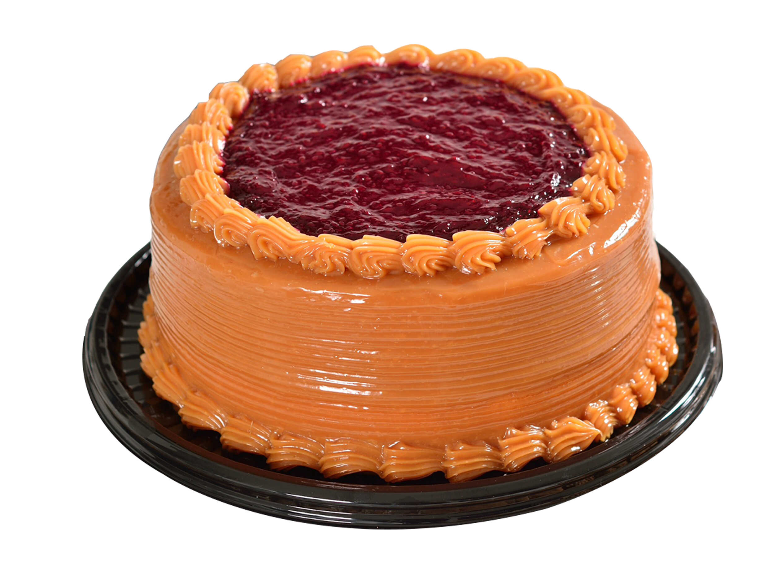 Torta Maria luisa con sabor a vainilla, cubierta y rellena de salsa de mora