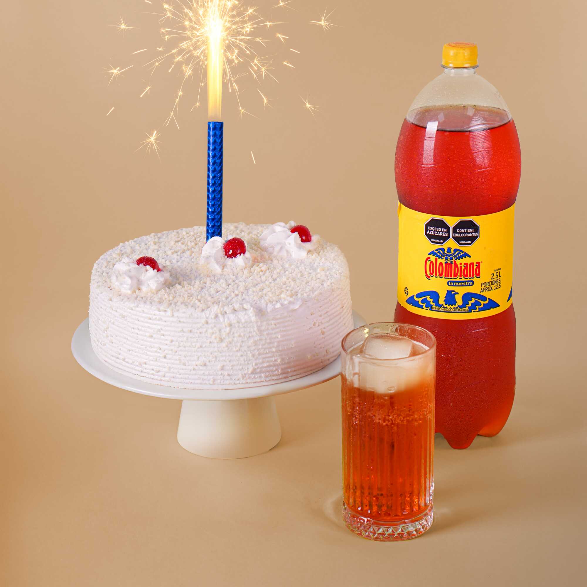 Torta Sensación Nube Blanca 20 Porciones*1 + Gaseosa colombiana 2,5 L*1 + Vela Volcan*1