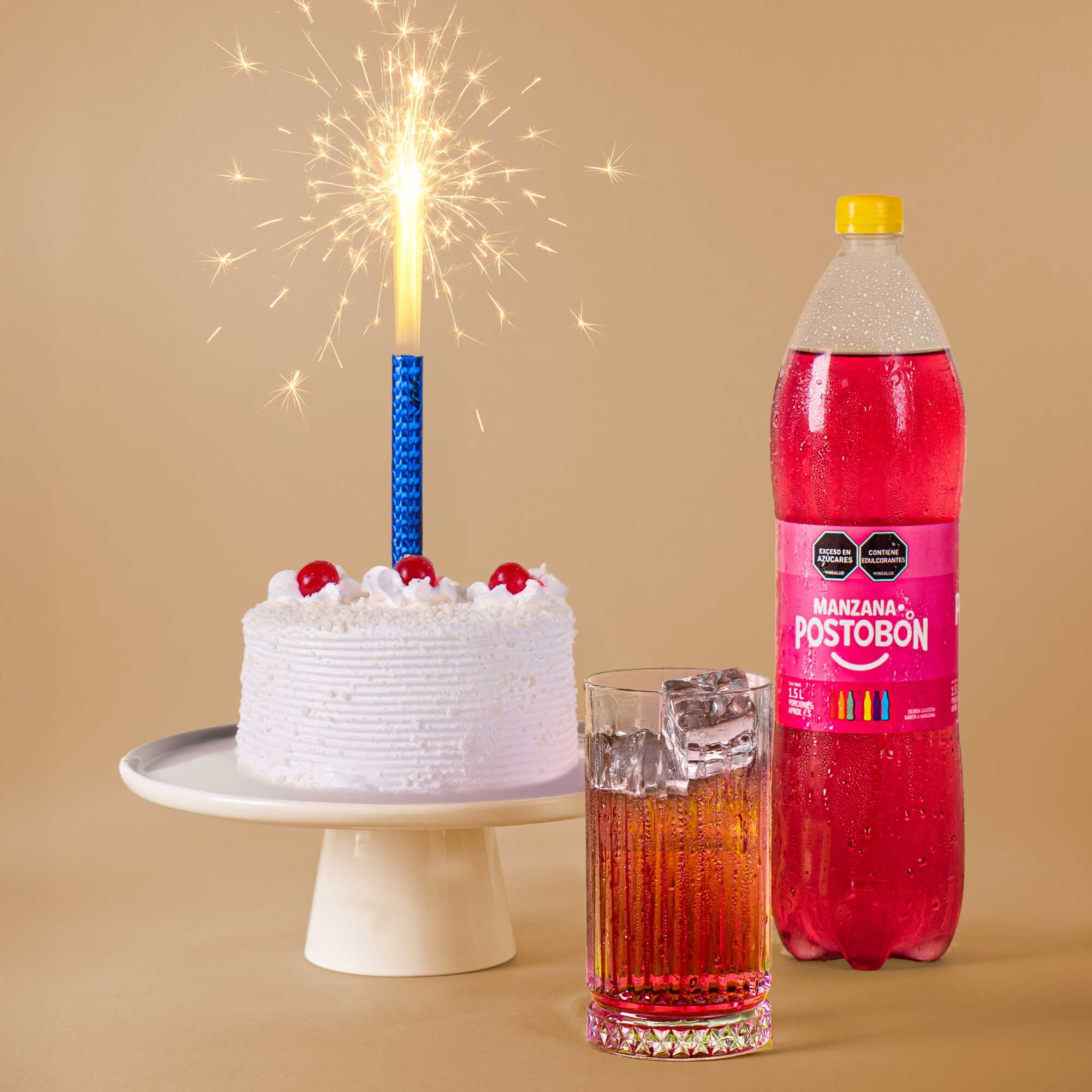 Gaseosa Manzana Postobón 1.5 L*1 + Vela Volcan*1 + Torta Sensación Nube Blanca 6 Porciones*1