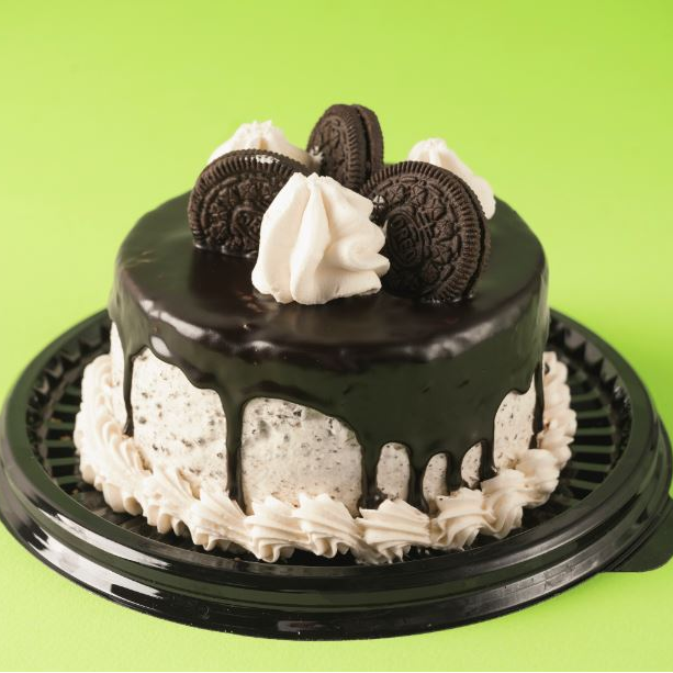 Deliciosa torta con la mejor combinación de vainilla y chocolate, cubierta con una suave crema de merengue galleta y cobertura de chocolate, decorada con galleta oreo
