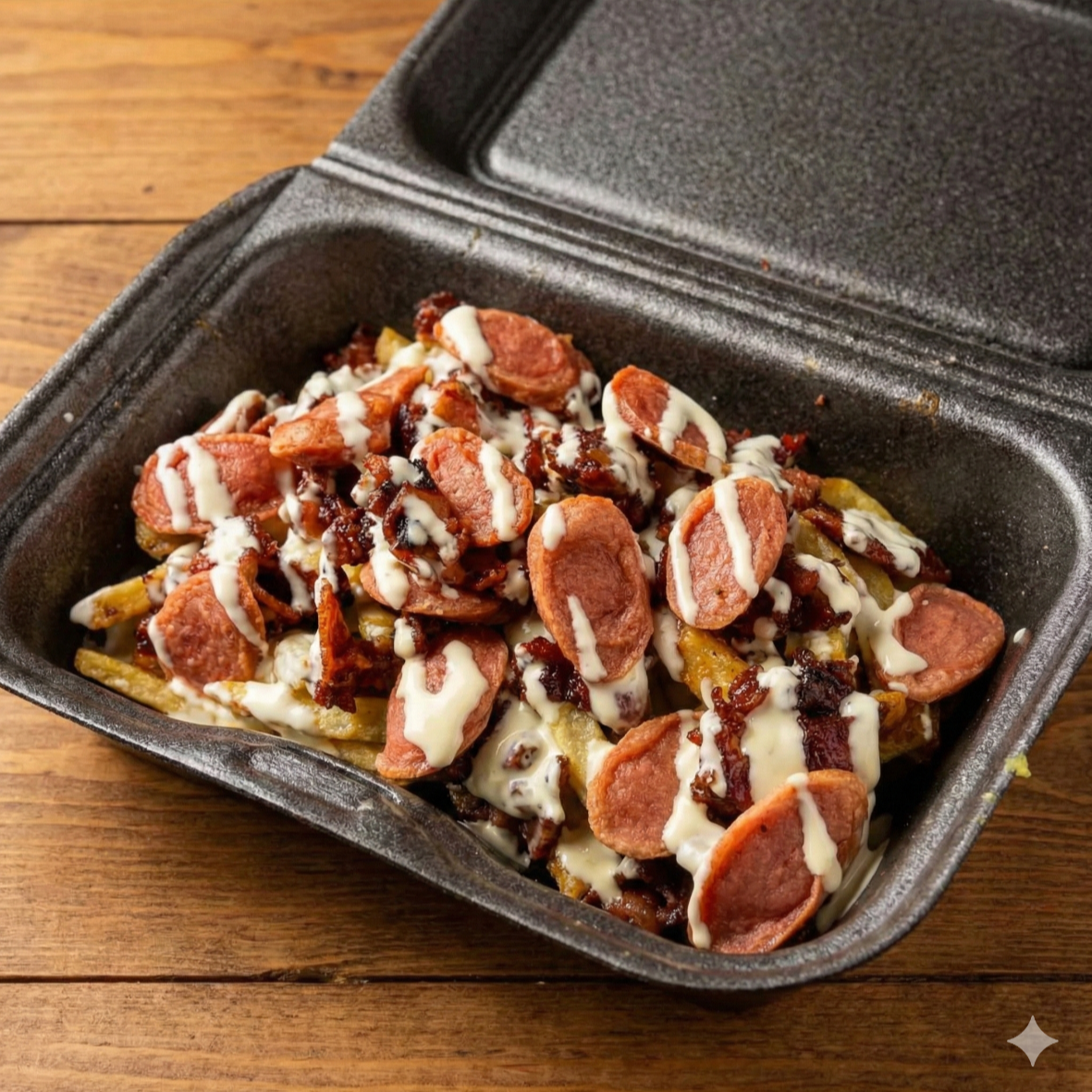 Papas a la francesa , acompañadas de nuestro Pulled Pork, sour cream ,pico de gallo y nuestra deliciosa salsa de la casa