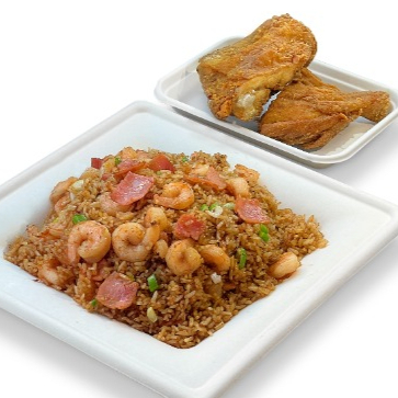Delicioso arroz mixto para compartir en familia + medio pollo apanado, acompañante a elección (4 crocantes lumpias de la casa o una Coca-Cola de 1.5 L. Combo ideal para 4 personas.