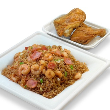Delicioso arroz mixto para compartir en familia + medio pollo apanado, acompañante a elección (4 crocantes lumpias de la casa o una Coca-Cola de 1.5 L. Combo ideal para 4 personas.
