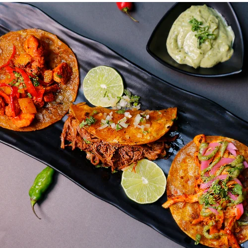 200 g De jugosa carne de birria, pimentón y cebolla salteados y fundidos en abundante queso mozzarella, 4 tortillas de maiz y guacamole para acompañar.