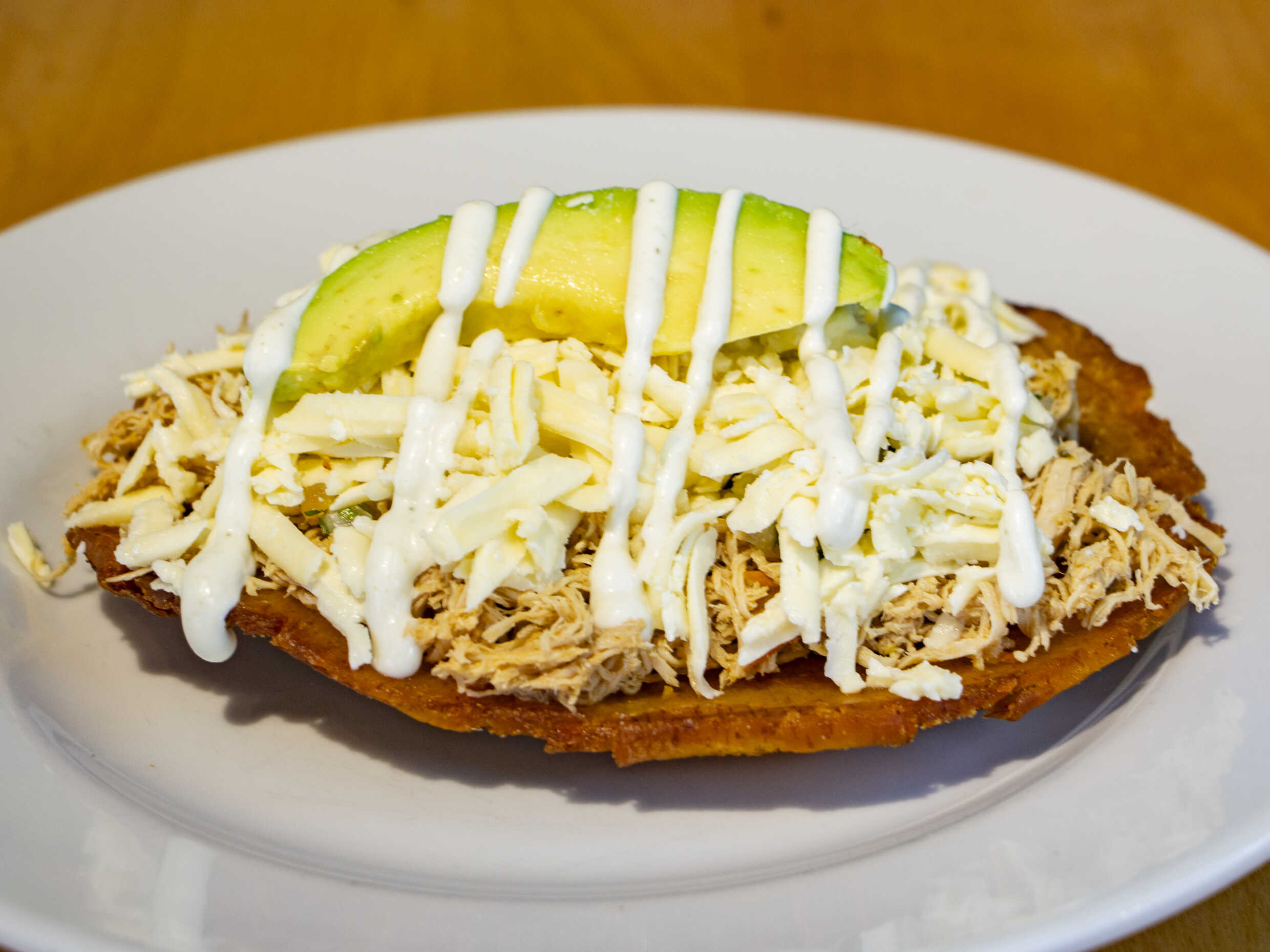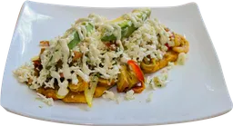 Plátano verde, queso, aguacate, pico de gallo, proteína a elección y salsa de la casa.