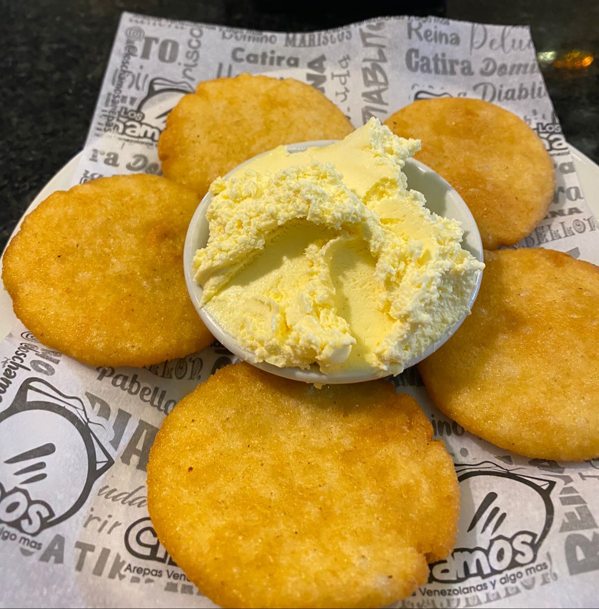 5 Arepitas fritas de harina pan con nata.
