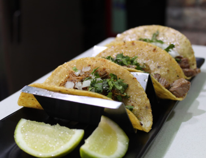 Tacos con jugosa carne asada a la parrilla, servidos en tortilla artesanal con todo el sabor mexicano.