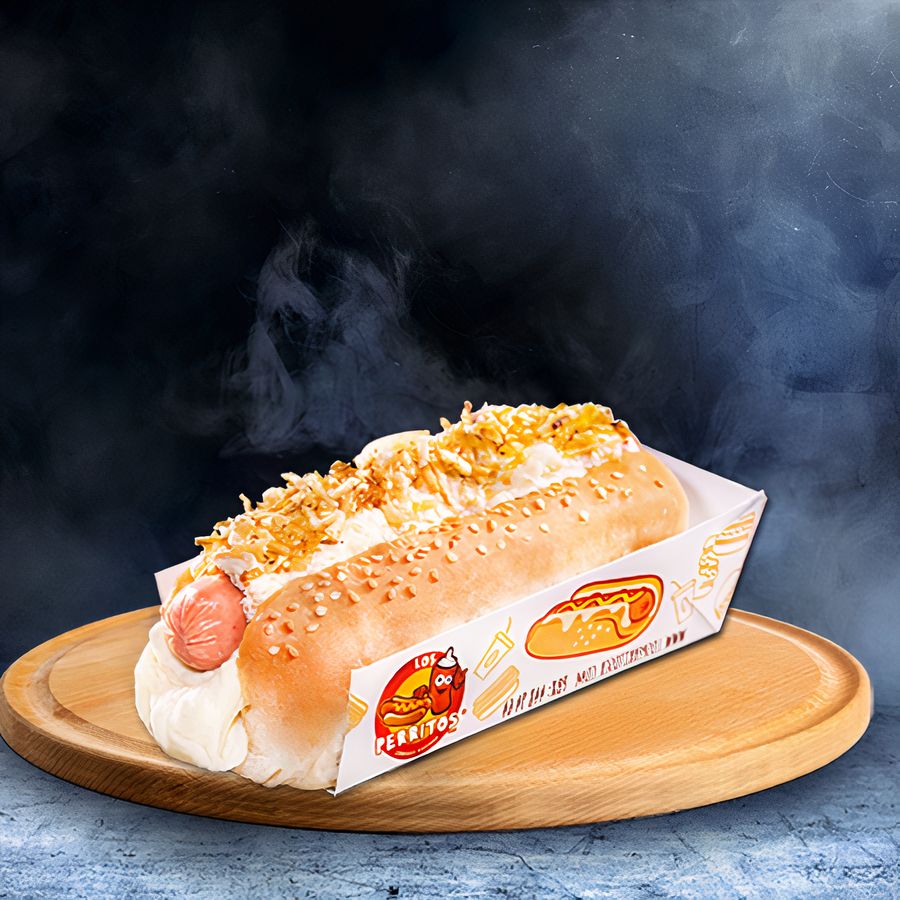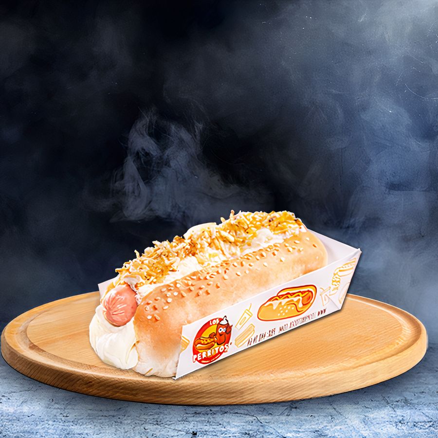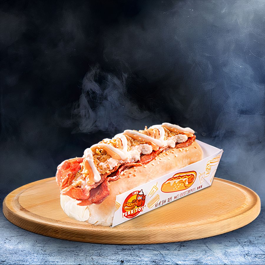 Perrito en pan blandito, salchicha americana a la plancha que realza su sabor, queso fundido delicioso, tocineta ahumada, nuestra ensalada especial, papitas ripio crujientes, salsas y toppings a tu gusto.
