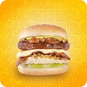 Hamburguesa en pan doradito, doble carne (res y pollo 90 g c/u), queso fundido, tocineta ahumada, papitas ripio crujientes, tomate fresco, nuestra ensalada especial y salsas a tu gusto.