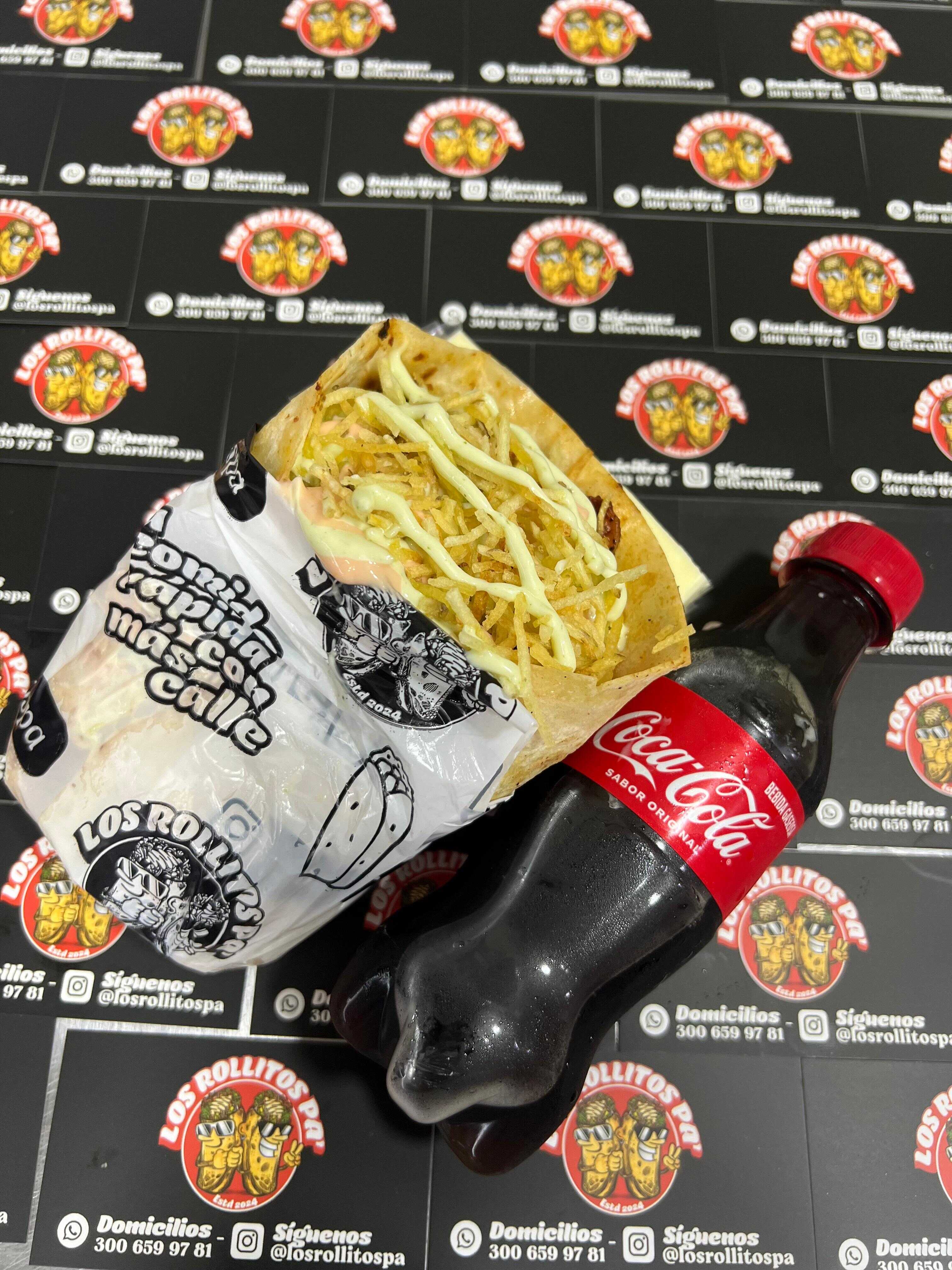 elige el sabor de tu rollito favorita entre: Pollo, Carne, o Mixto. Acompañado de una gaseosa 250 ml