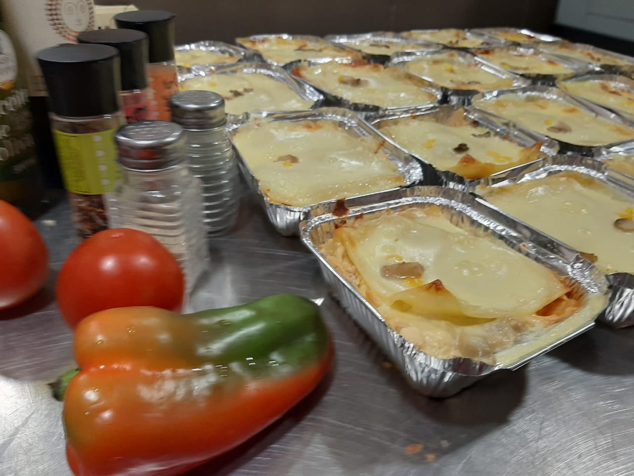 4 lasagnas junior mixtas de 250gr estas son de carne de res molida y pechuga desmechada, pan de ajo.