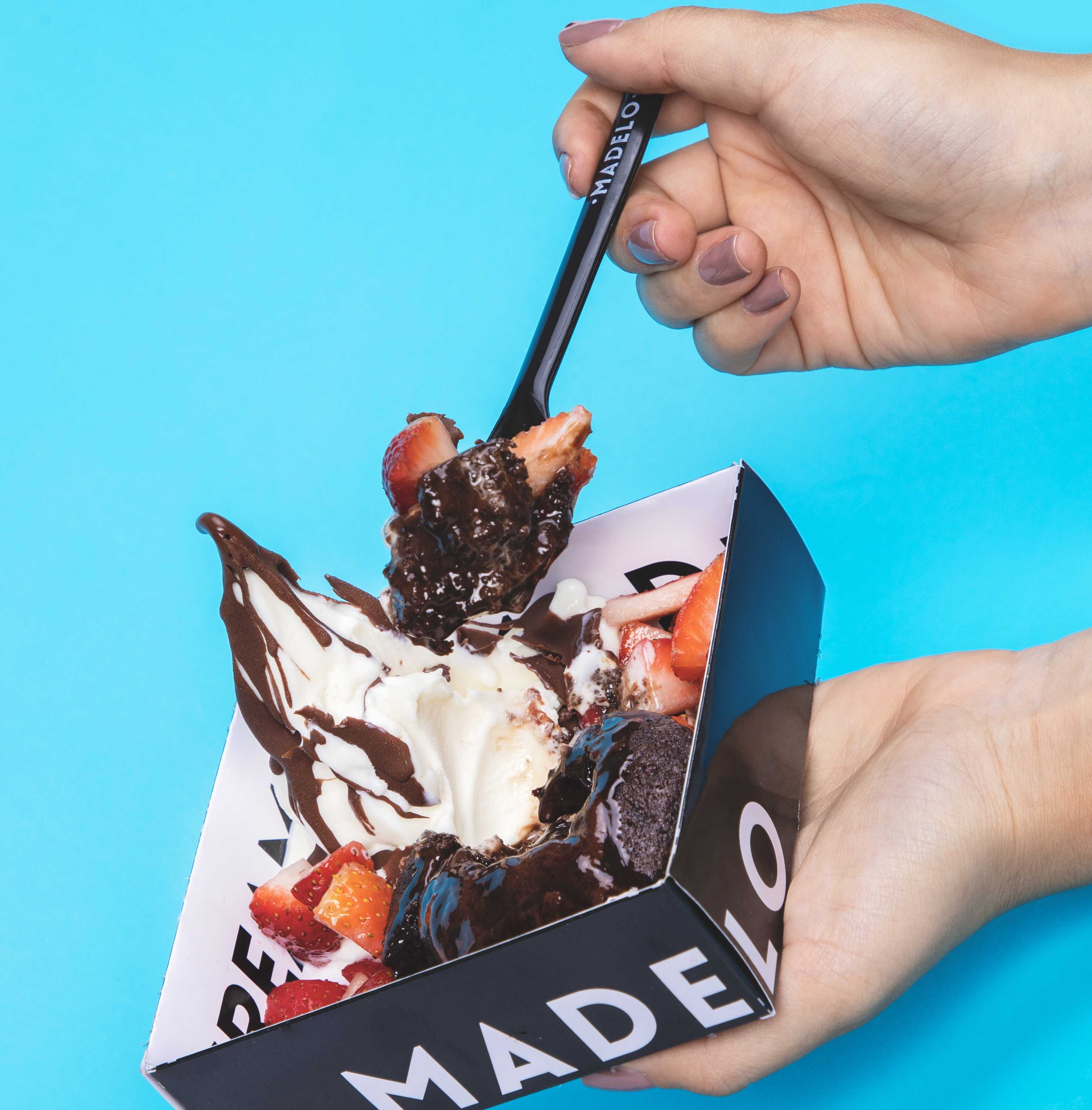 Helado de yogurt bajo en grasa y con menos azúcar. Elige tus toppings y arma tu helado soñado. Usamos empaques ecológicos.