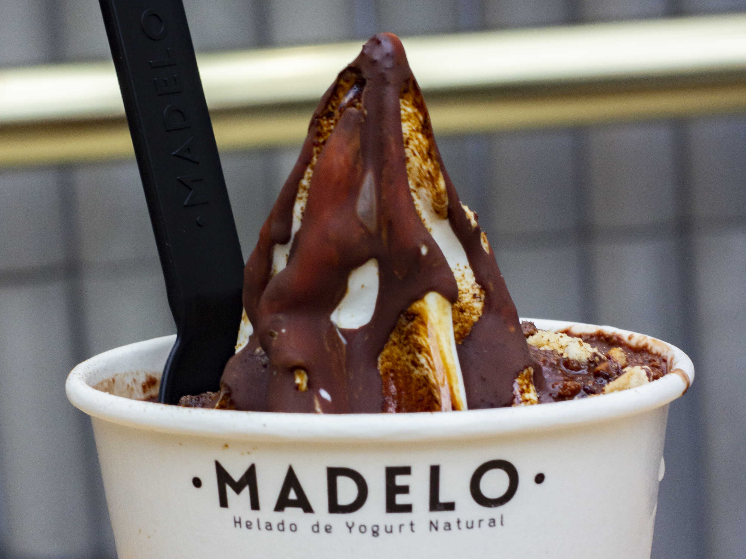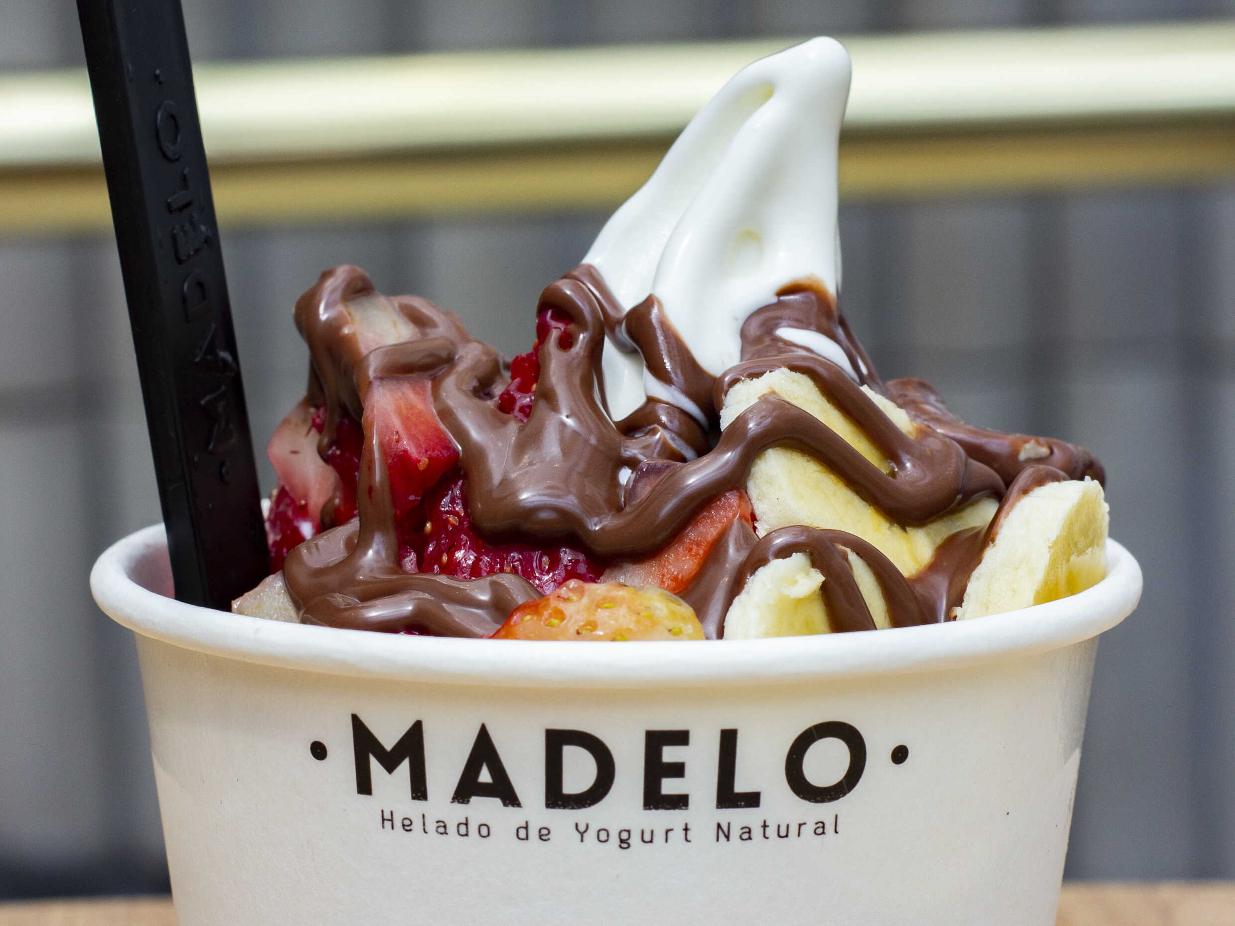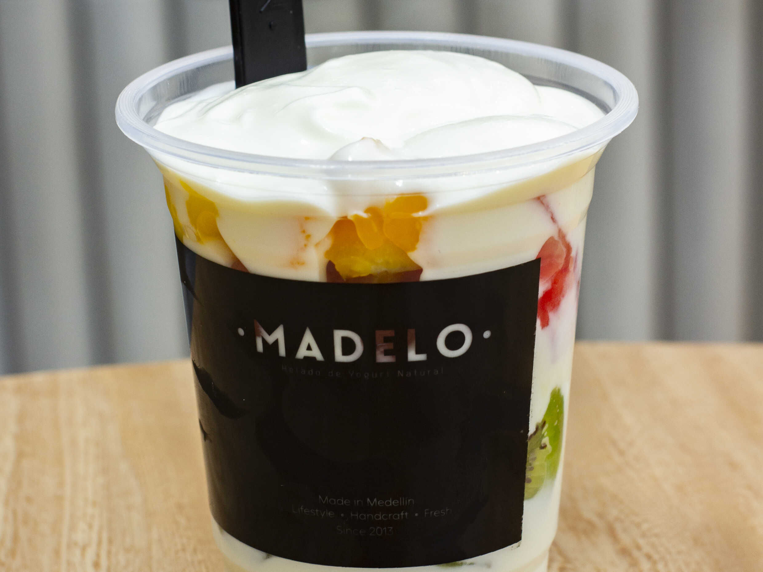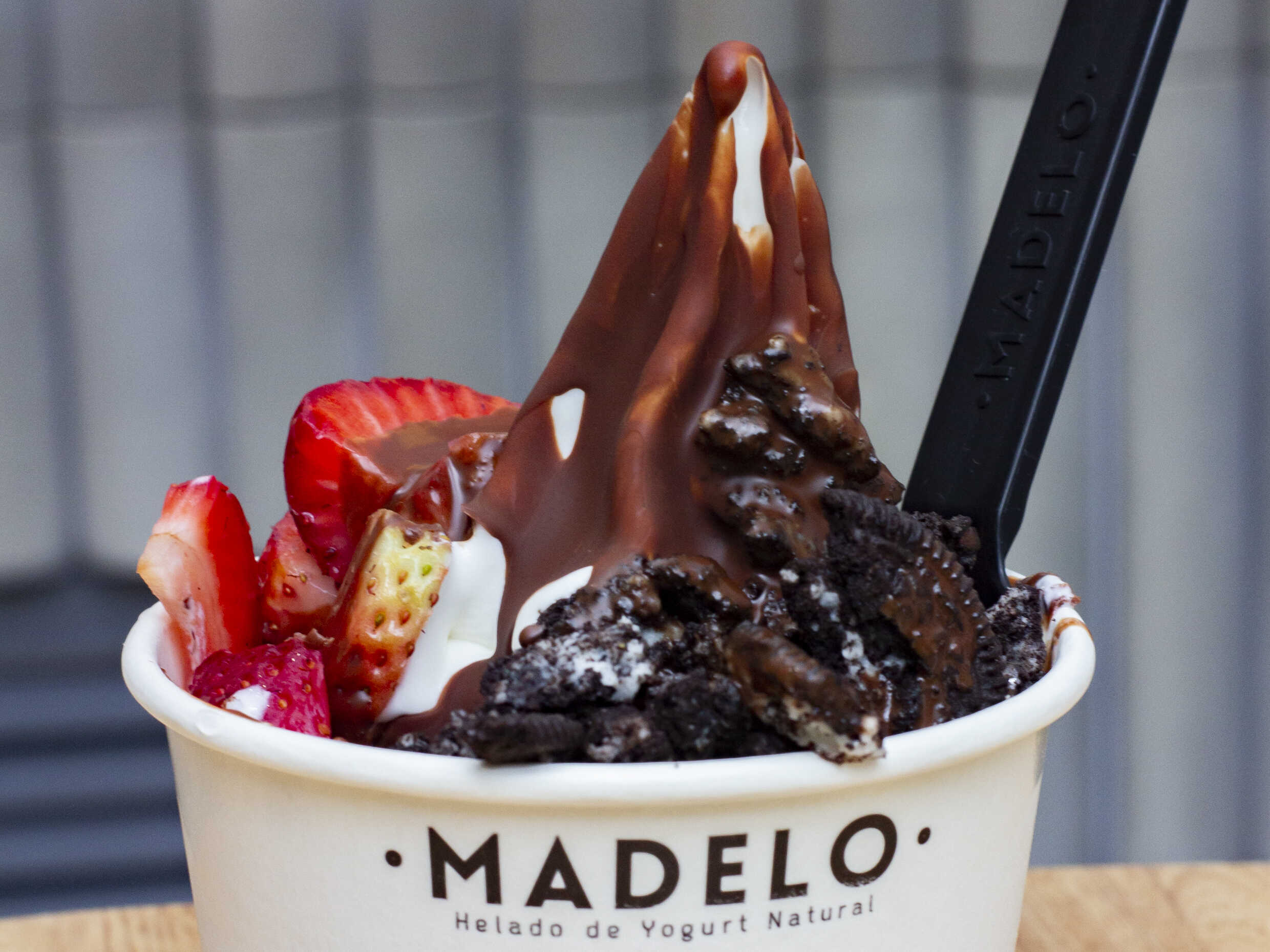 Helado de yogurt natural bajo en grasa y azúcar, más 4 toppings clásicos a elección.