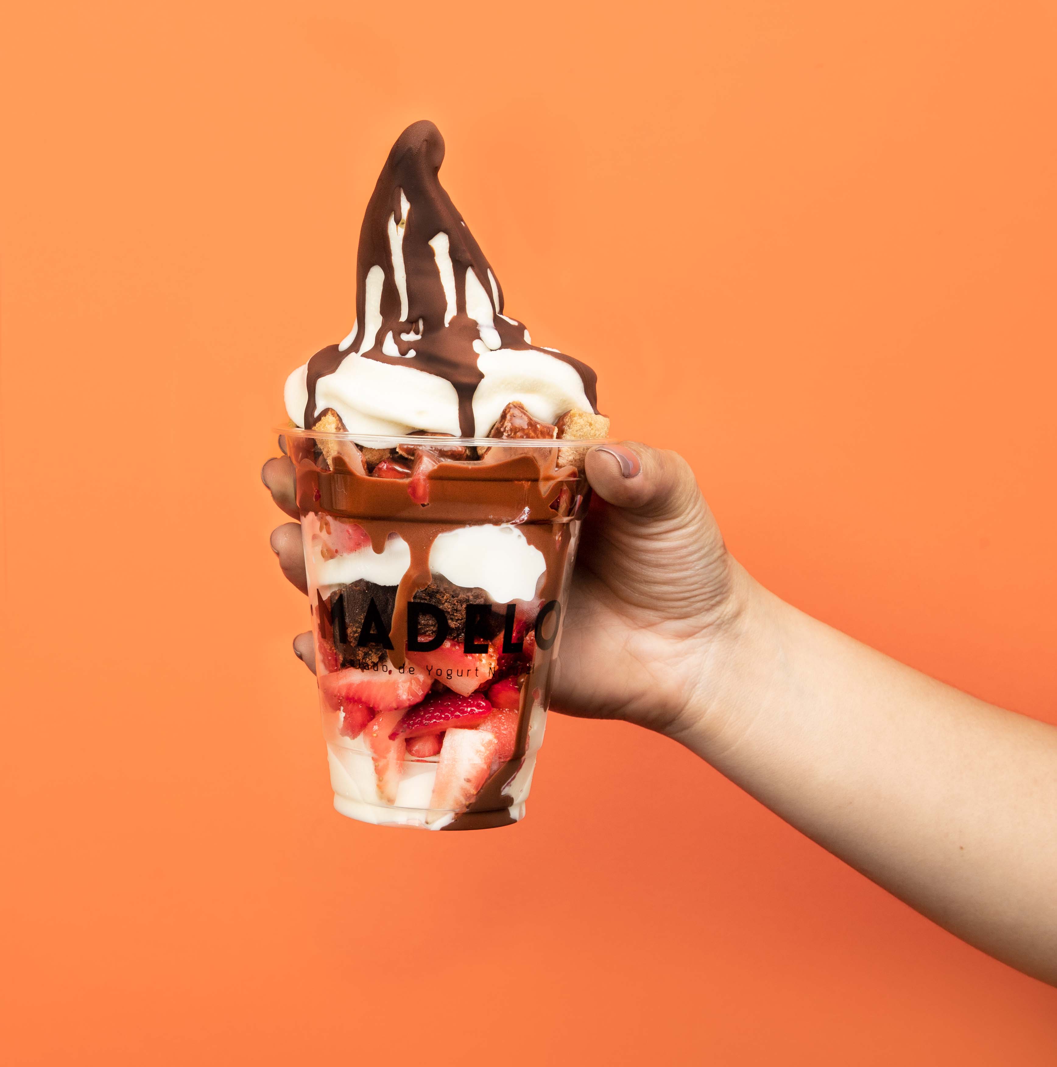 Helado de yogurt 8 Oz bajo en grasa y con menos azúcar. Elige tus toppings y arma tu helado DiDilovers Soñado. Usamos empaques ecológicos.