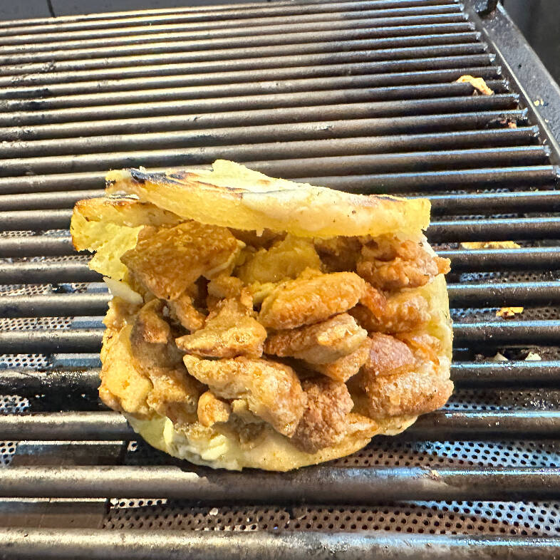 Deliciosa arepa rellena con nuestro tradicional chicharrón crocante y doble queso