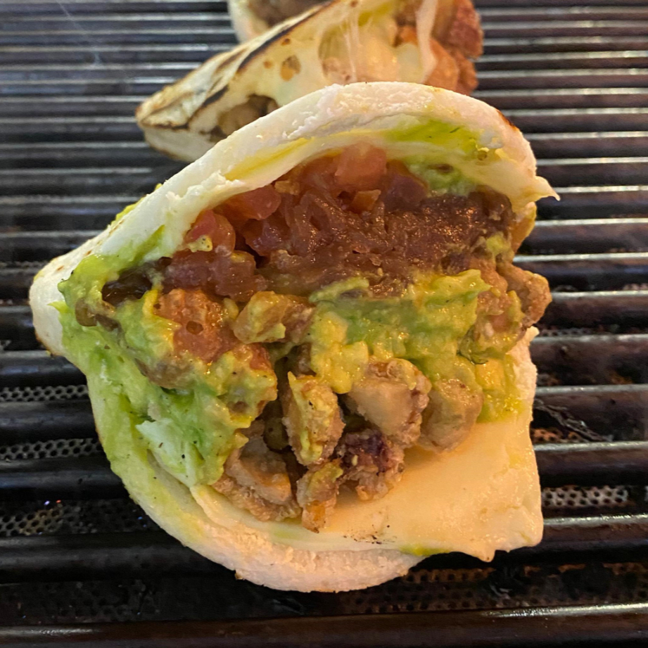 Rellena con carne desmechada, guacamole, fríjol, refrito, sour cream y queso mozzarella.