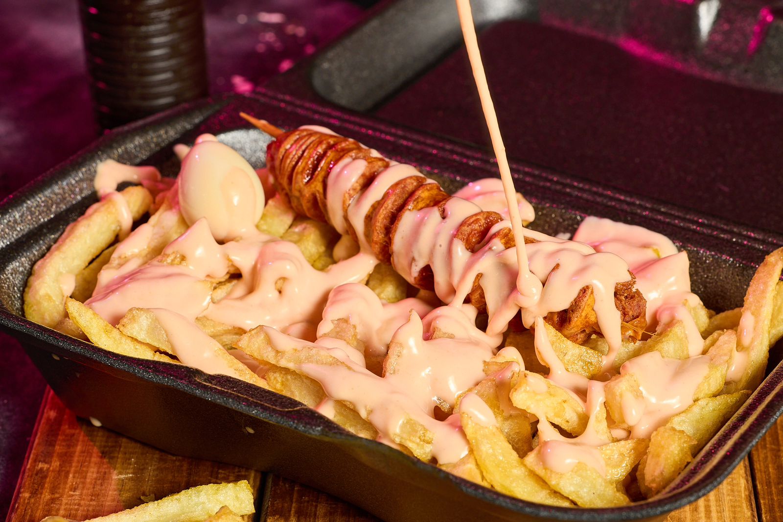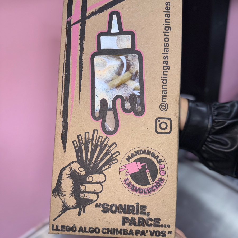 Papas mas 5 salchichas, 5 chorizos, 5 huevitos, salchicha Ranchera, 1 longanizas, 1 chorizo de ternera, queso, tocineta, pollo desmechado, bombón de pollo, maicitos, arepa, carne de hamburguesa.