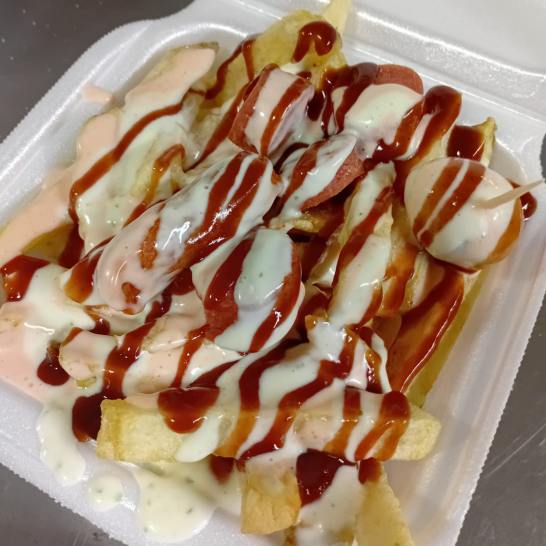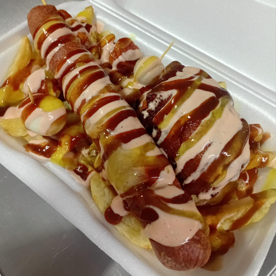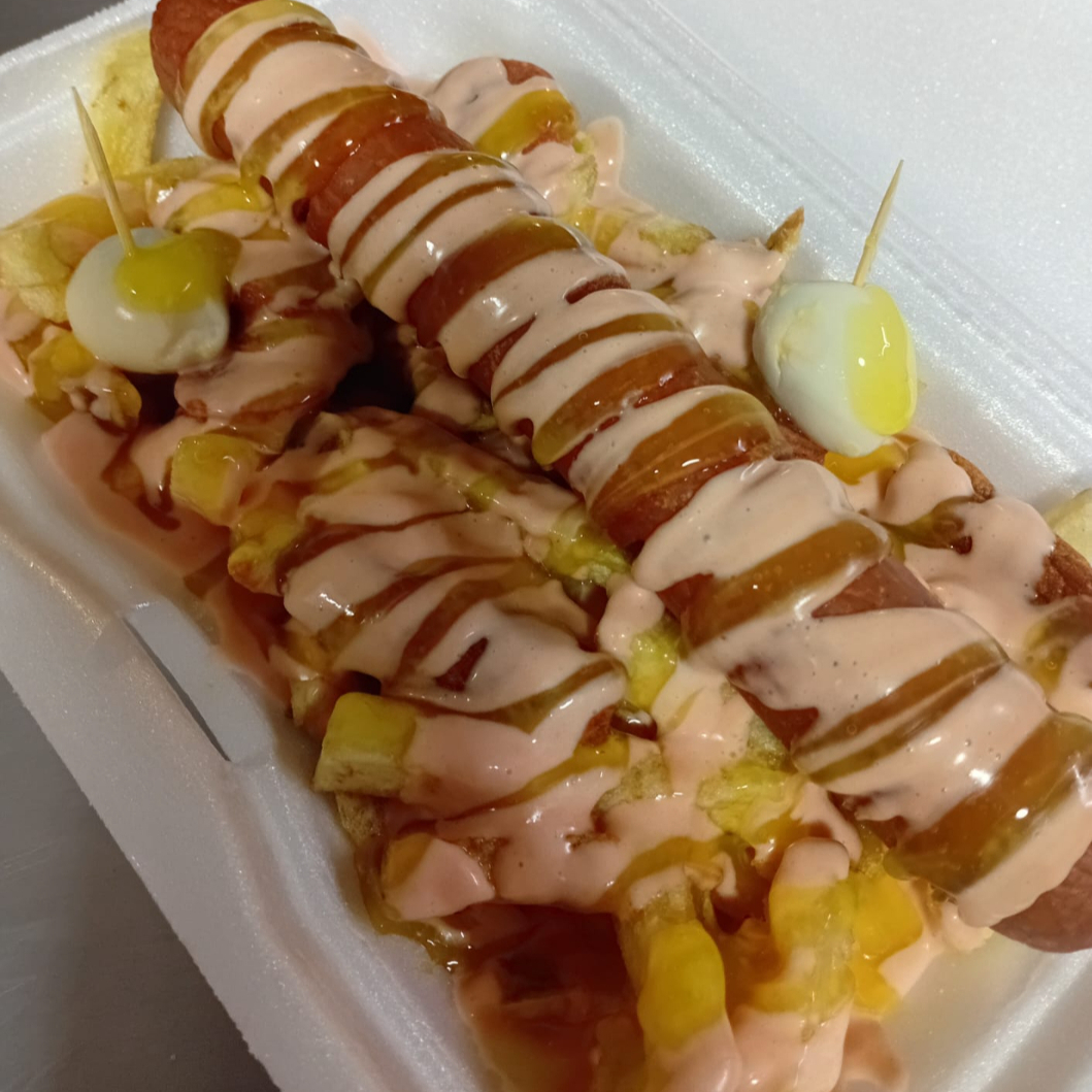 Papas más 4 salchichas más 1 huevito más 1 choricito