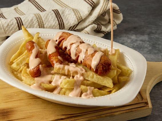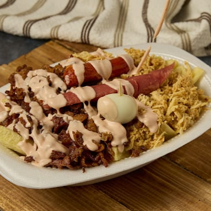 Pollo desmechado, 1 longaniza, 2 salchichas, 2 choricitos y 2 huevos.
