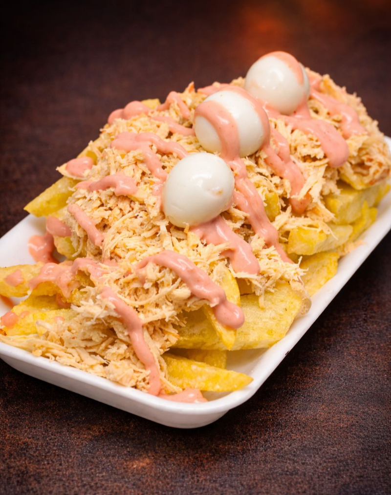 ¡El combo perfecto para los amantes del sabor! Crujientes papas con queso mozzarella derretido, acompañadas de longaniza artesanal, 2 salchichas, 2 chorizos y 2 huevos al punto. Todo cubierto con tus salsas favoritas. 🤤 ¡Un festín en cada bocado!