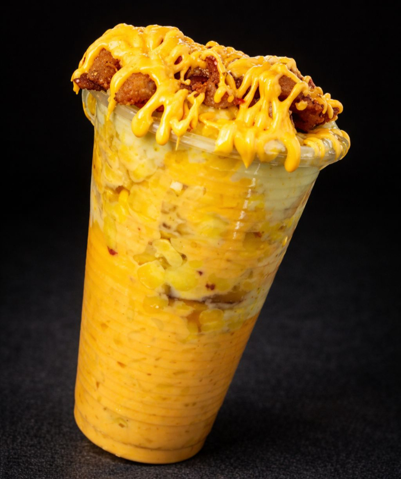 Queso costeño, queso mozzarella, queso cheddar y maíz tierno.