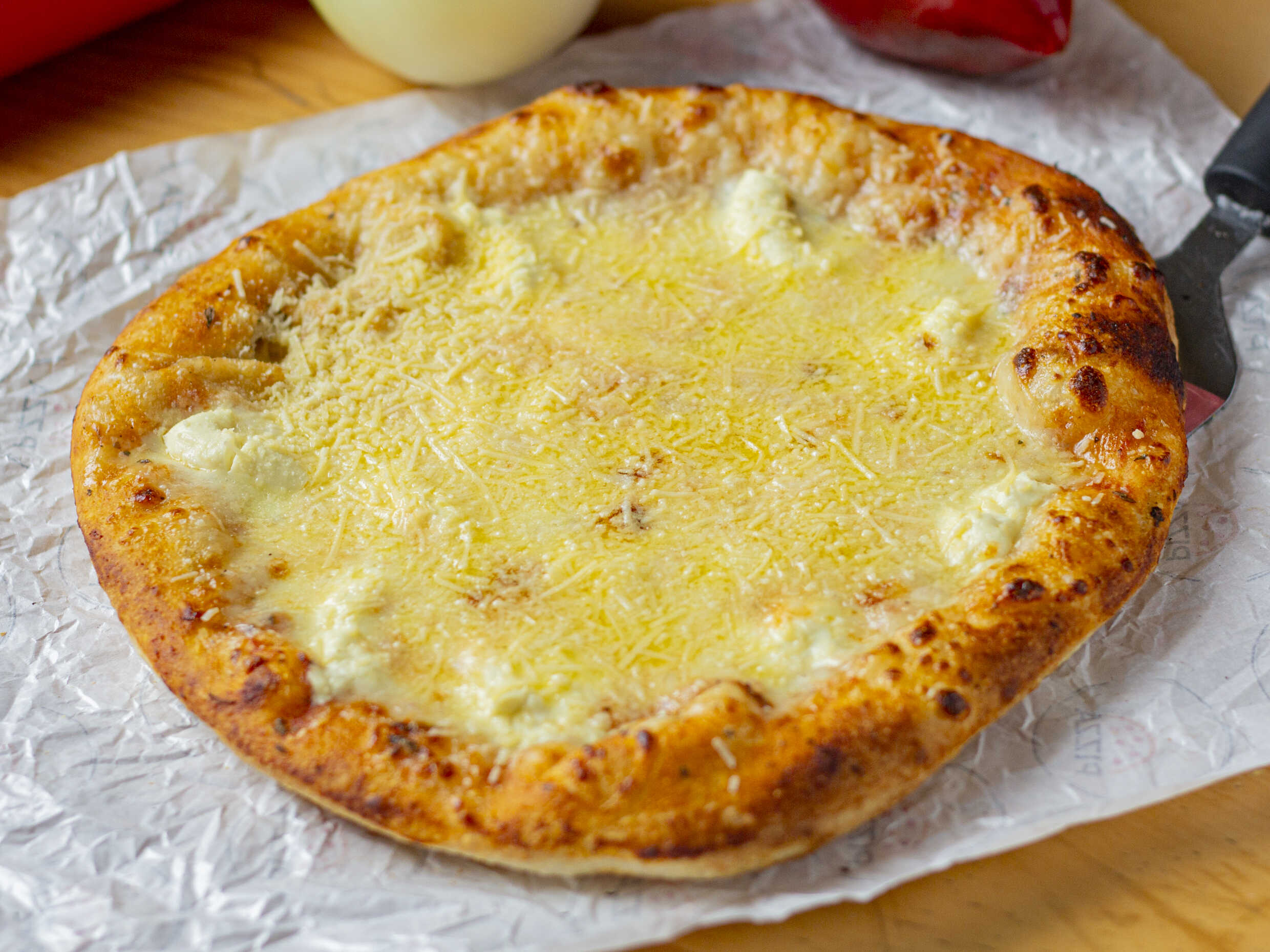 Pizza Tres Quesos 20cm*2 (4 porciones. Pizza tres quesos, puedes acompañarla con albahaca u orégano seco (opcional))