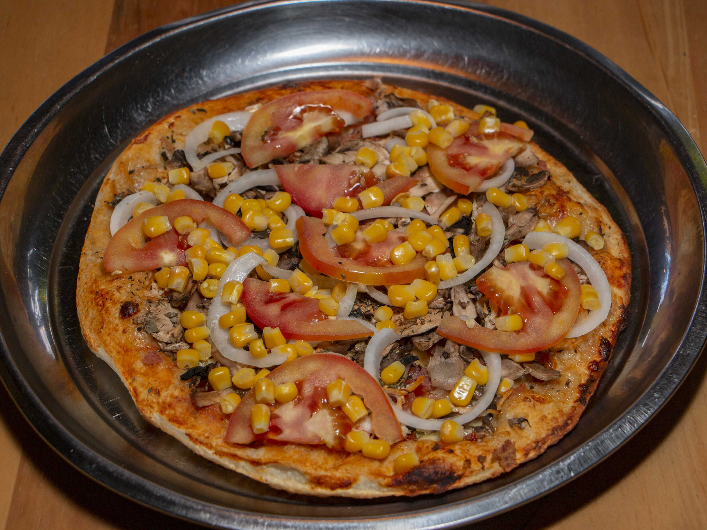 Queso ,tomate,maiz,champiñon,cebolla y pimenton