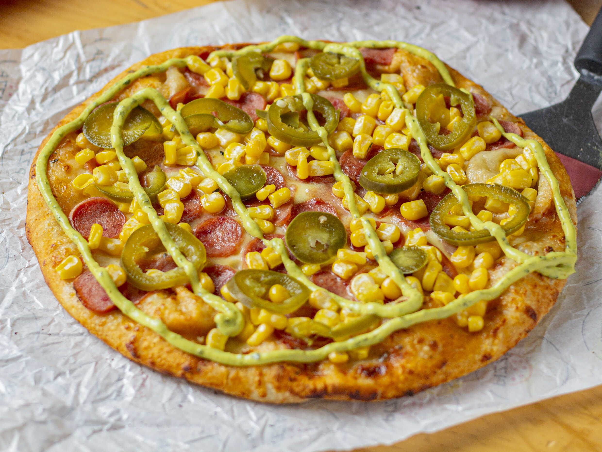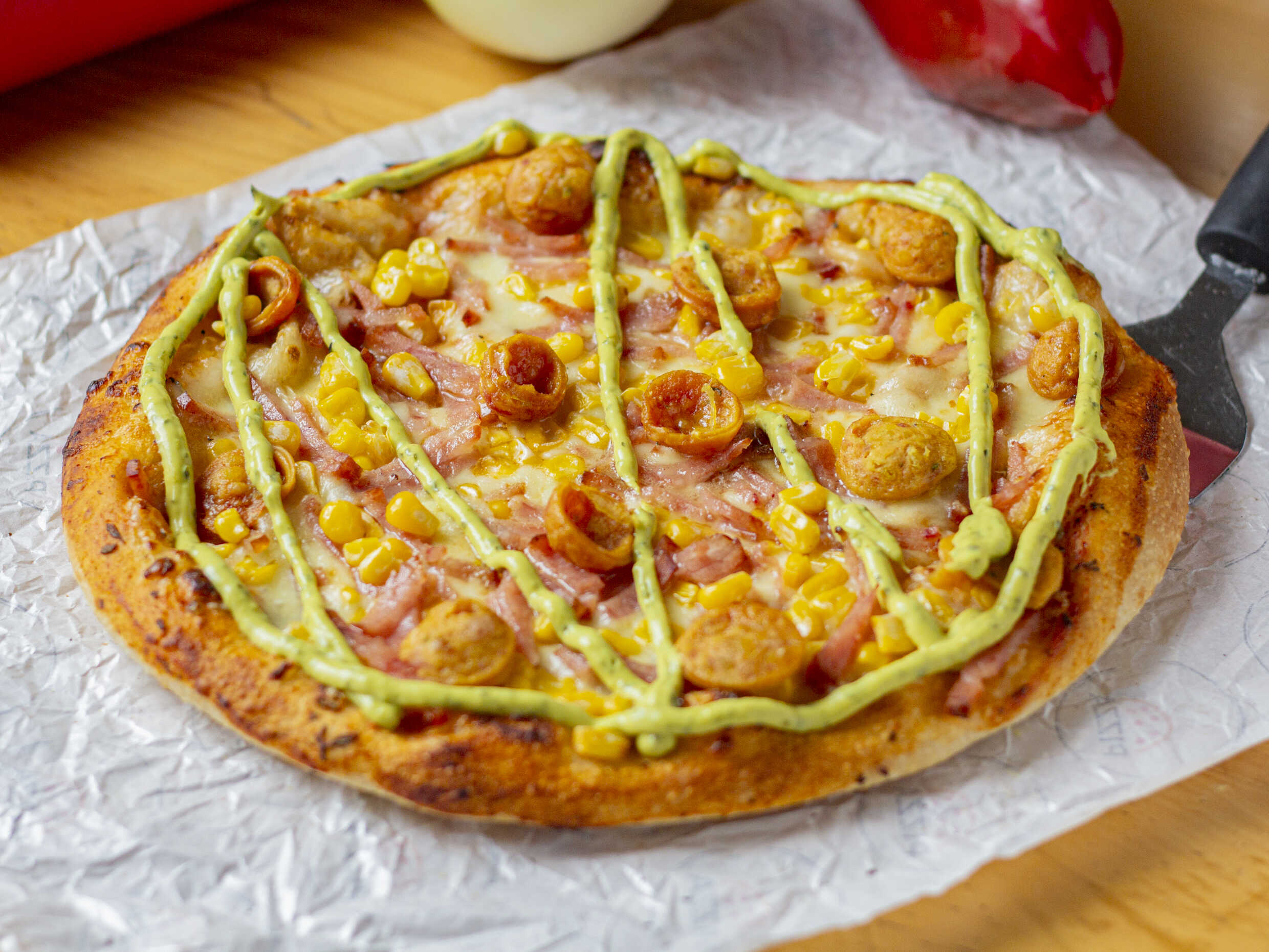 deliciosa pizza acompanada de dulce de guayaba