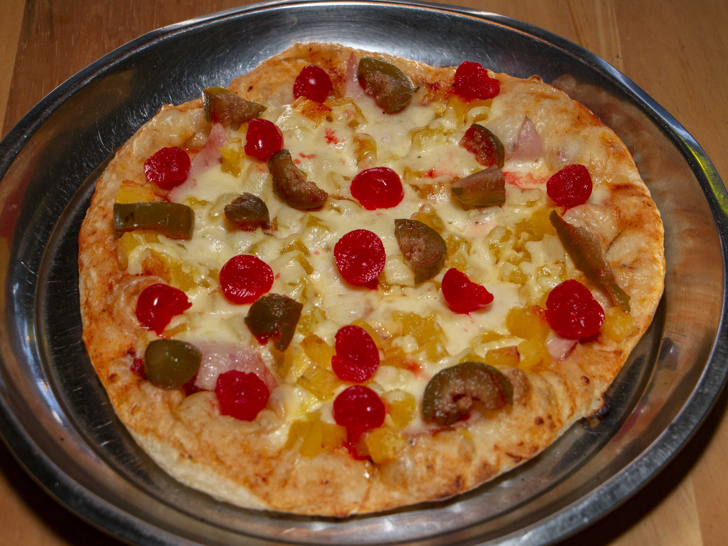 Queso, jamón, piña dulce.