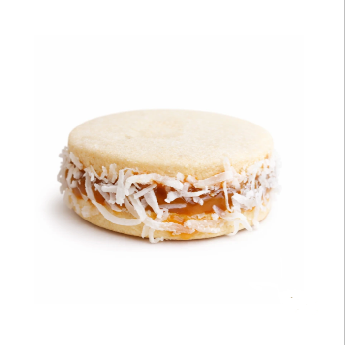 Dulce tradicional compuesto por dos galletas suaves unidas con relleno de arequipe, cubierto con coco rallado