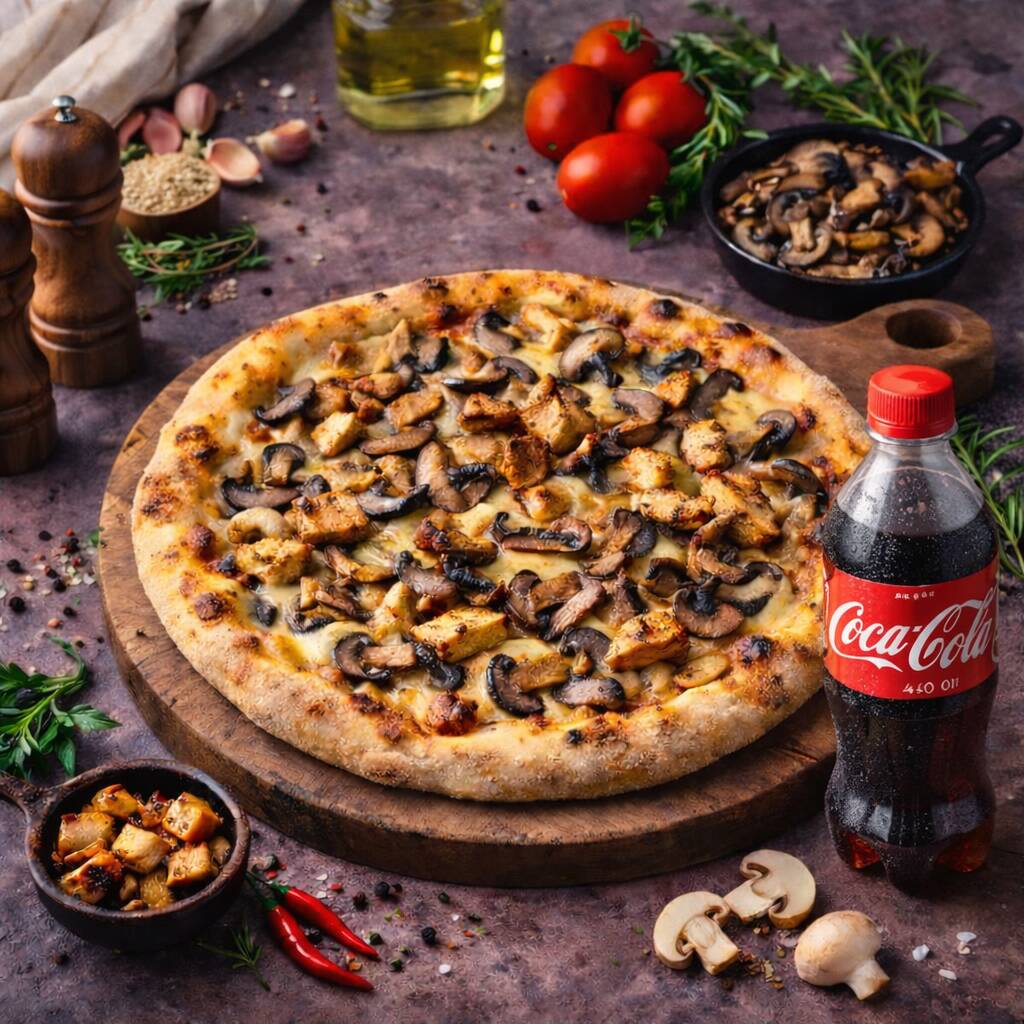 Pizza Pollo y Hongos + Bebida