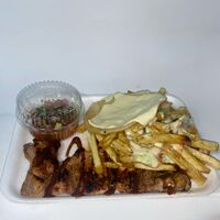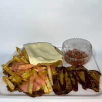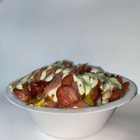 Picada de aproximadamente 1 kilo, ideal para 2 personas. Incluye papas a la francesa, mezcla de salchichas picadas con pollo desmechado, salchichón cervecero, maíz, abundante queso fundido y tocineta. Acompañada de salsas a elección.