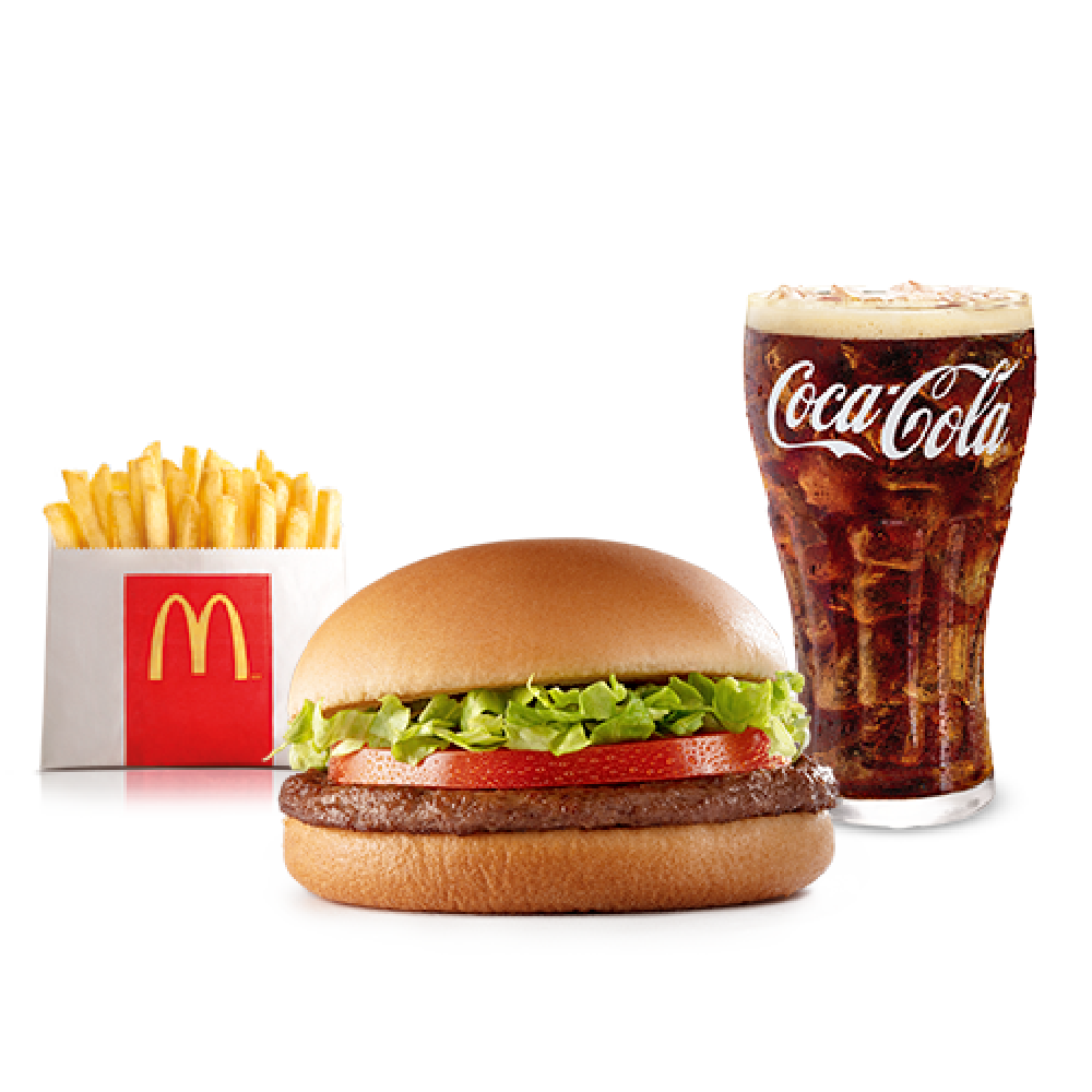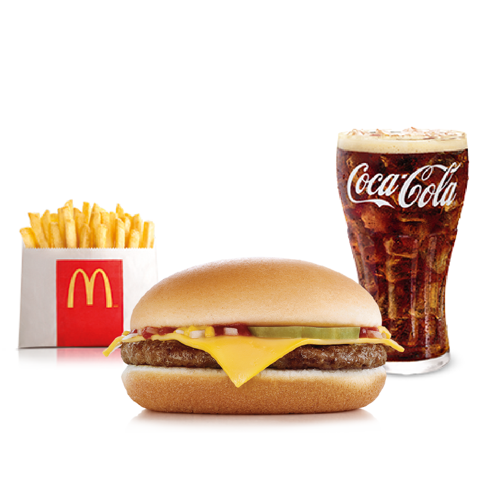 Elige tu McCombo de hamburguesa con carne de res de 125gr, cebolla 100% colombiana, pepinillos, queso cheddar, salsa de tomate y mostaza con papas medianas y gaseosa mediana a elegir.
