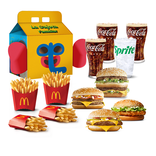 Lleva una (1) Cajita Feliz a elección y dos (2) McCombos Clásicos medianos a elección.