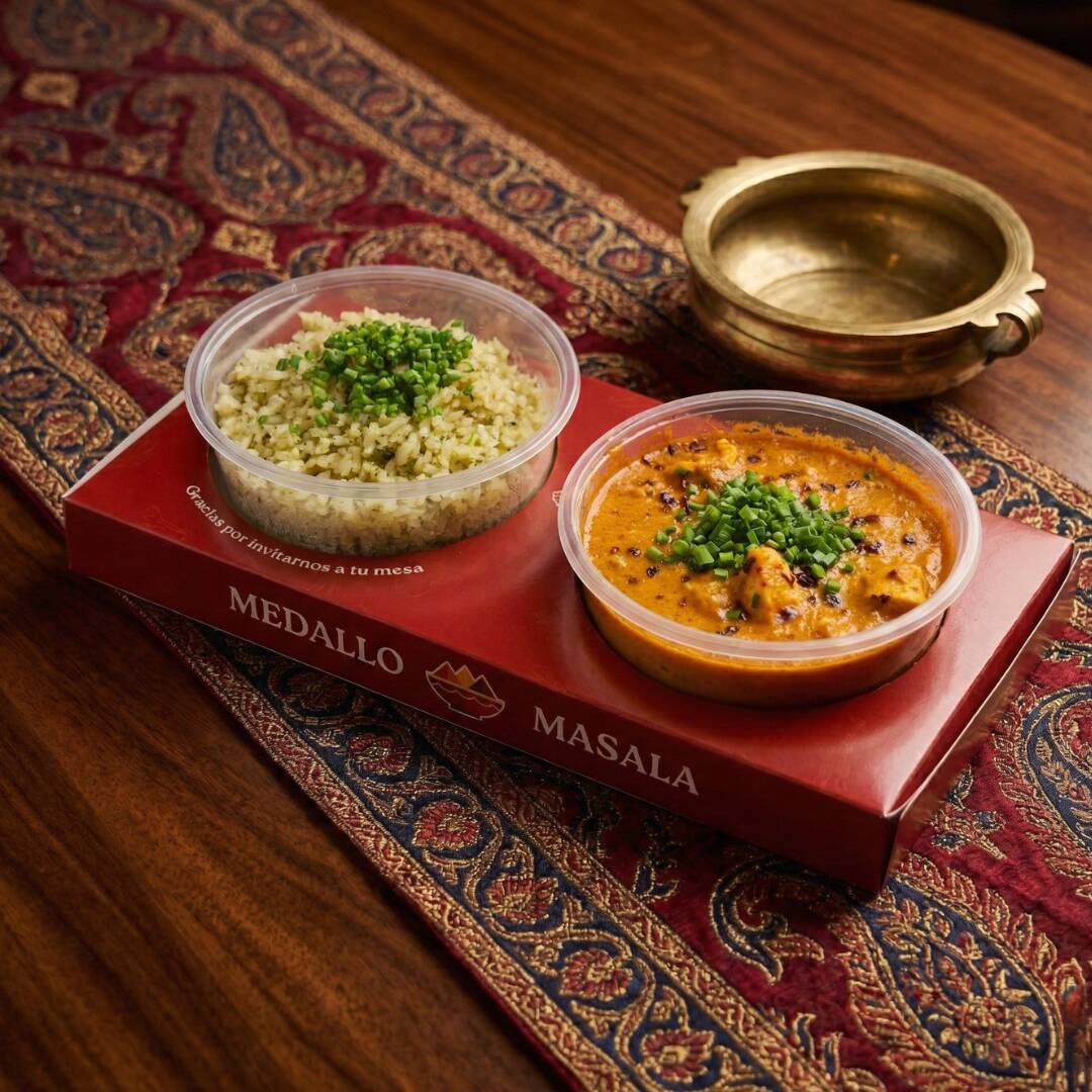 En una salsa de tomate intensa y bien integrada, con notas suaves de ajo, jengibre y especias aromáticas, el paneer - un queso esponjoso de origen hindú - ofrece un sabor lleno y equilibrado, sin picante. Se sirve acompañado de un arroz gustoso que complementa el plato a la perfección.