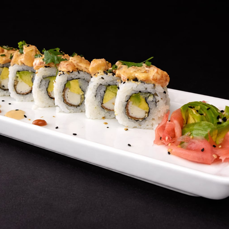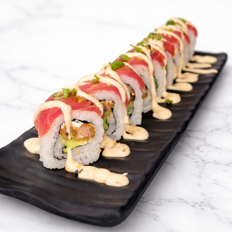 SUSHI ,QUESO CREMA,AGUACATE,CAMARON,TOPPIMG,ATUN FRESCO,SALSA SPCY