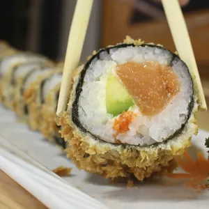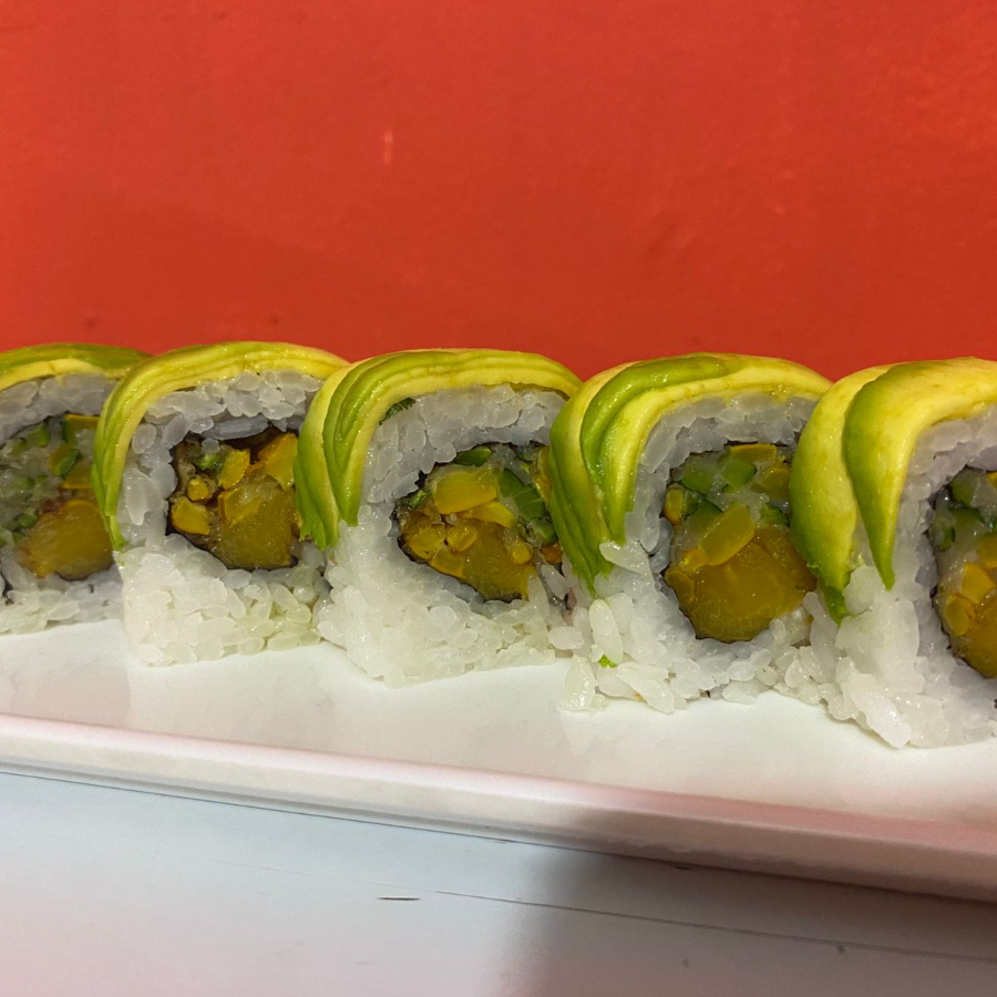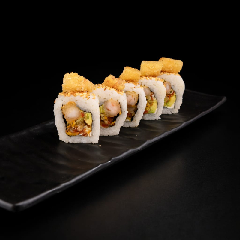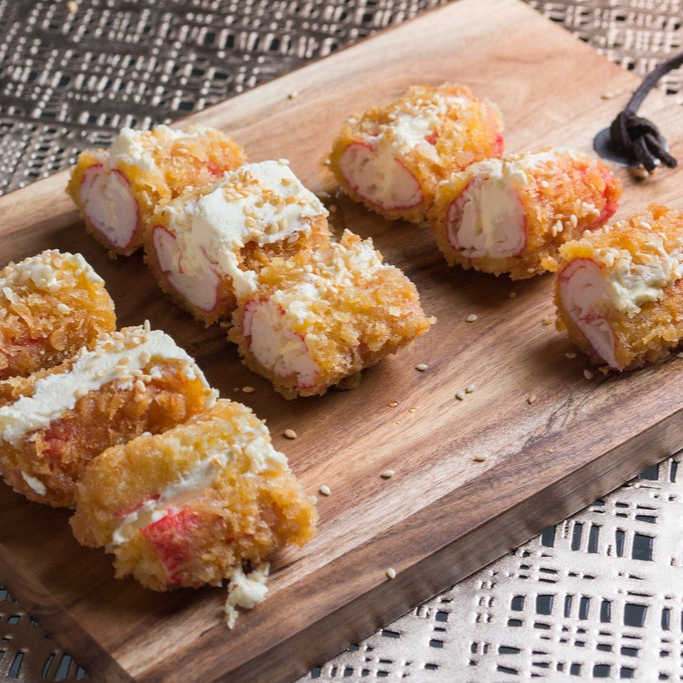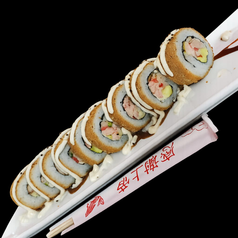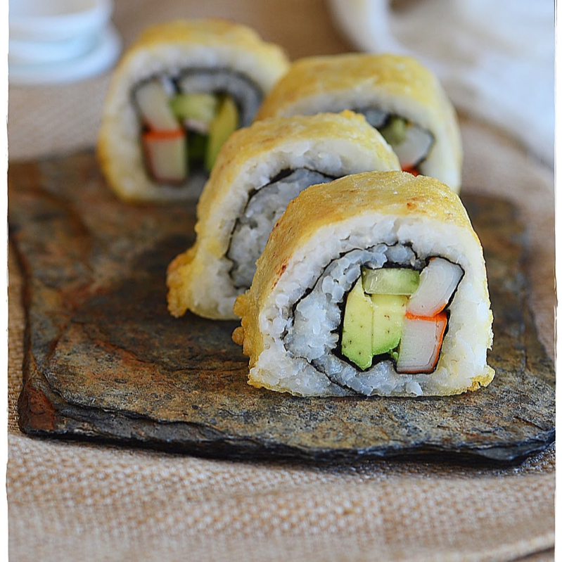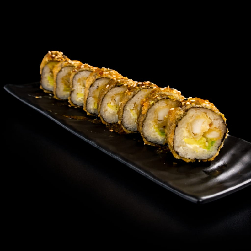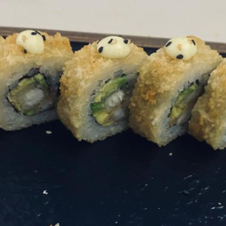 sushi apanado .queso crema,aguacate,palmito tenpura,