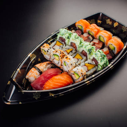 Selección de 40 deliciosos bocados de sushi a elegir para compartir.