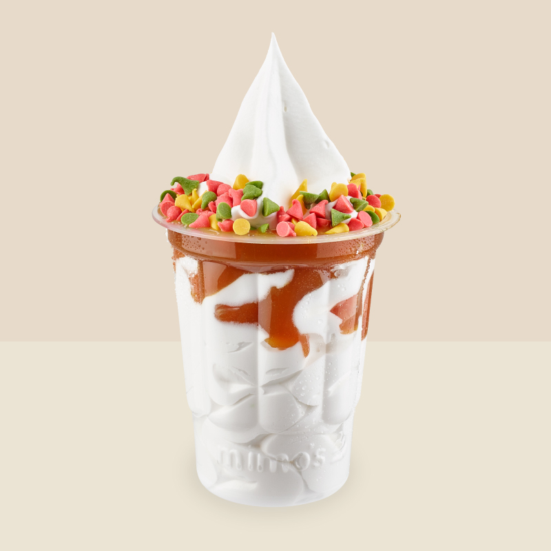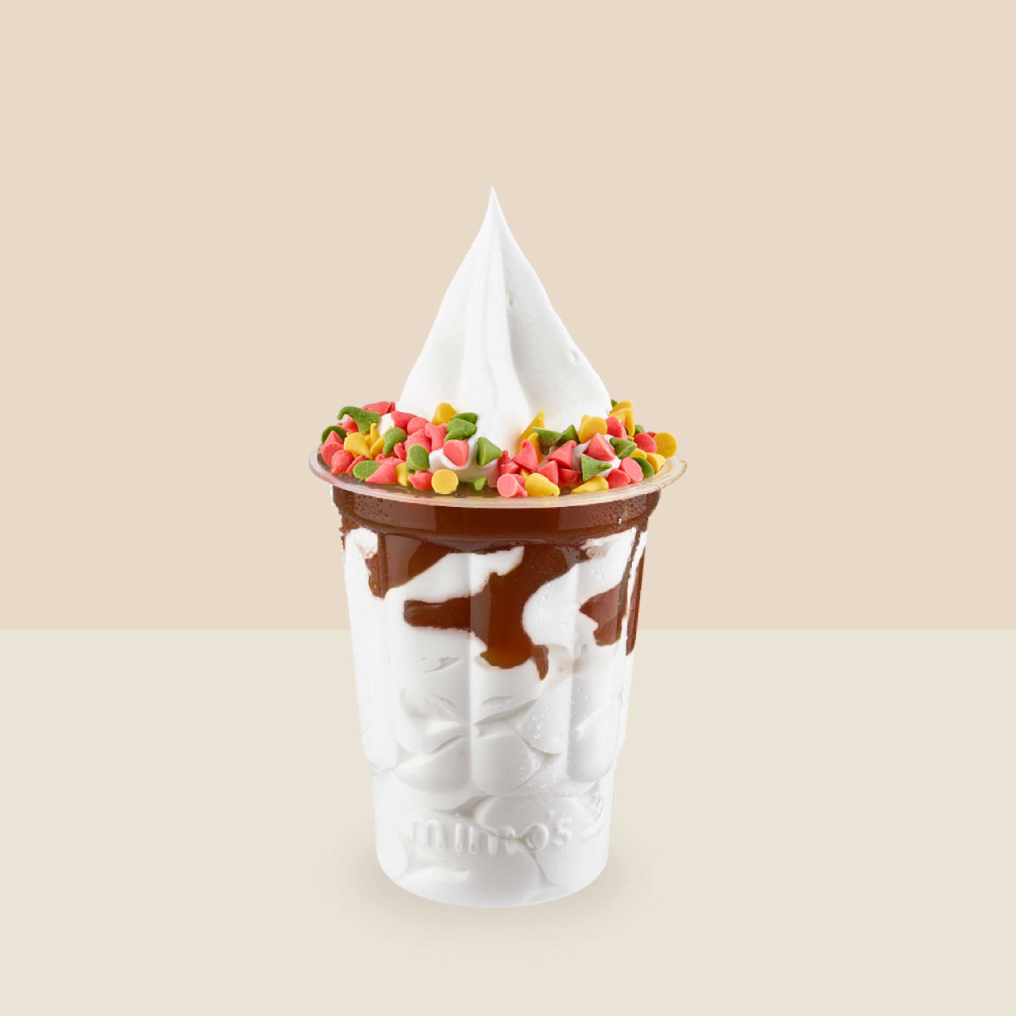 Mezcla de tus sabores favoritos: Helado suave de vainilla y milo granulado.
