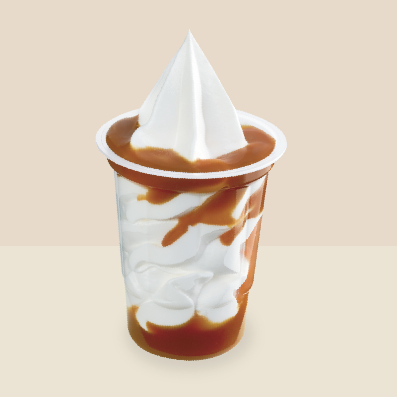 Perfecta combinacion de helado suave de vainilla y salsa de Caramelo