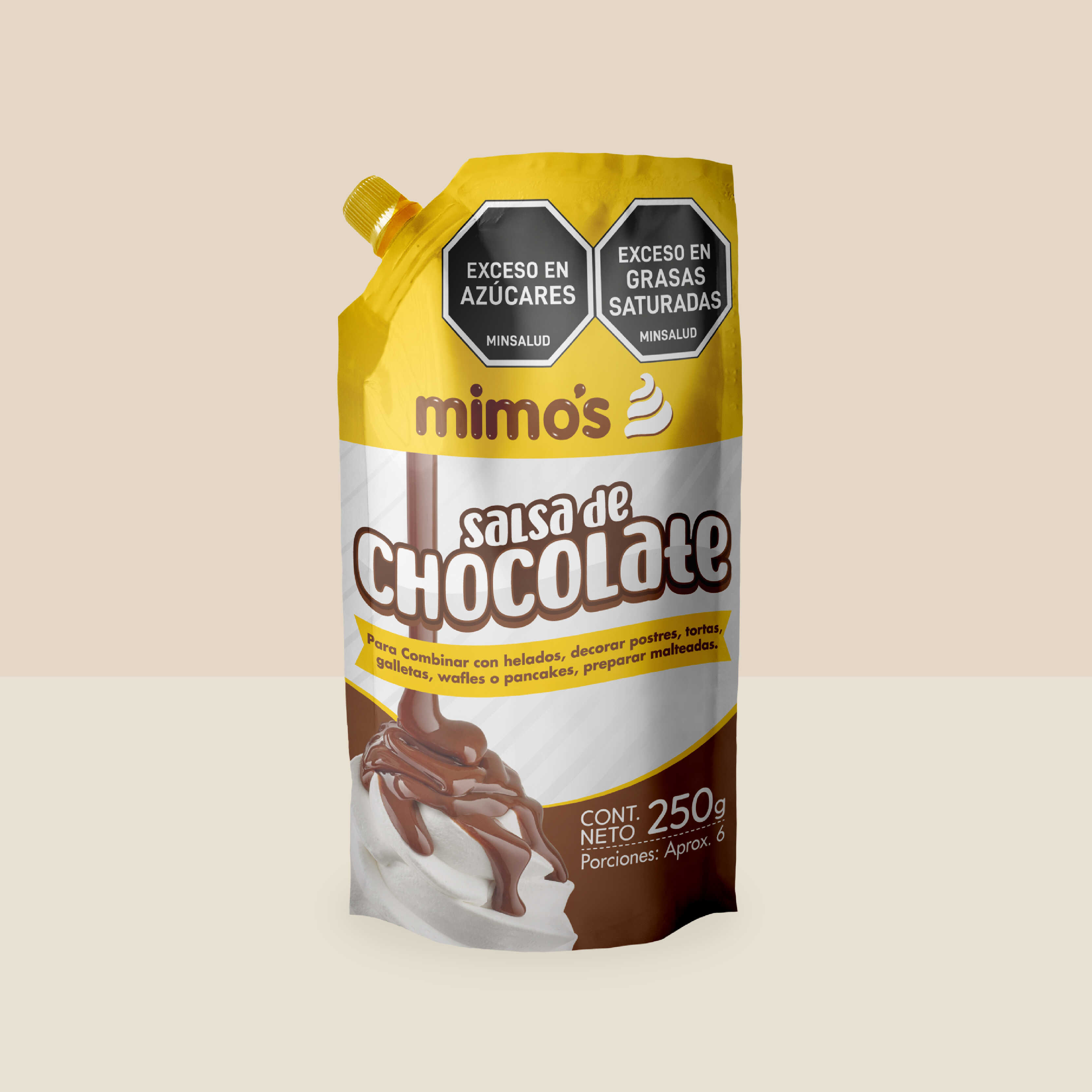 Salsa de chocolate 250 gr en empaque colapsible para disfrutar en casa.