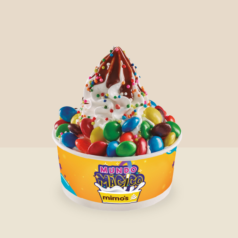 Divertida combinacion de Helado suave de vainilla, m&m y salsa Chocolate