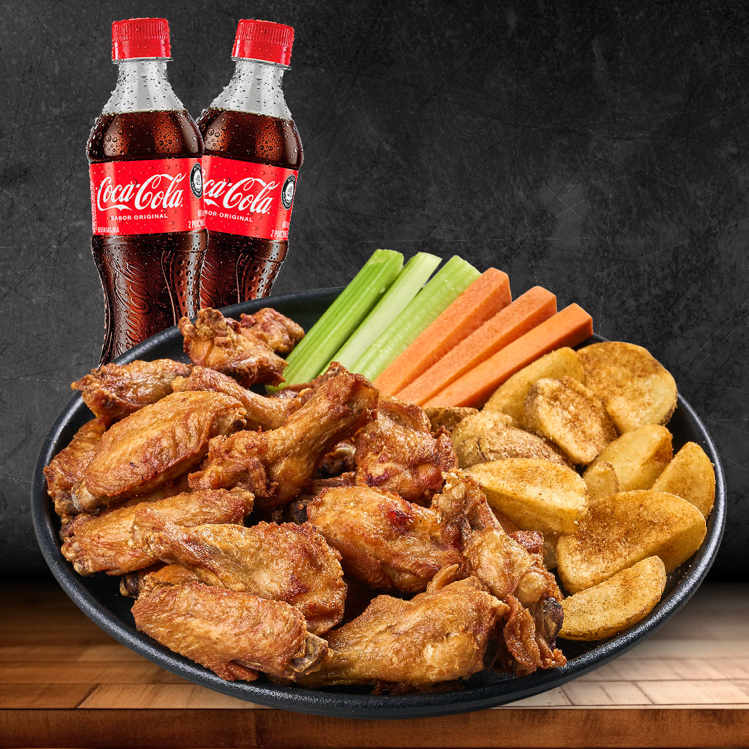Alitas x20 con porción papa casco, apio y zanahoria +bebida