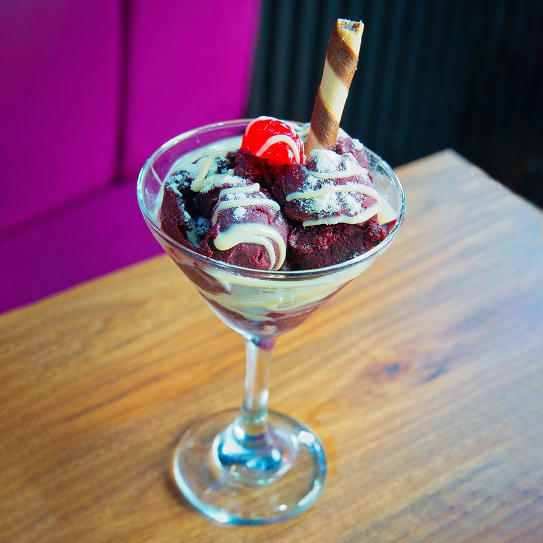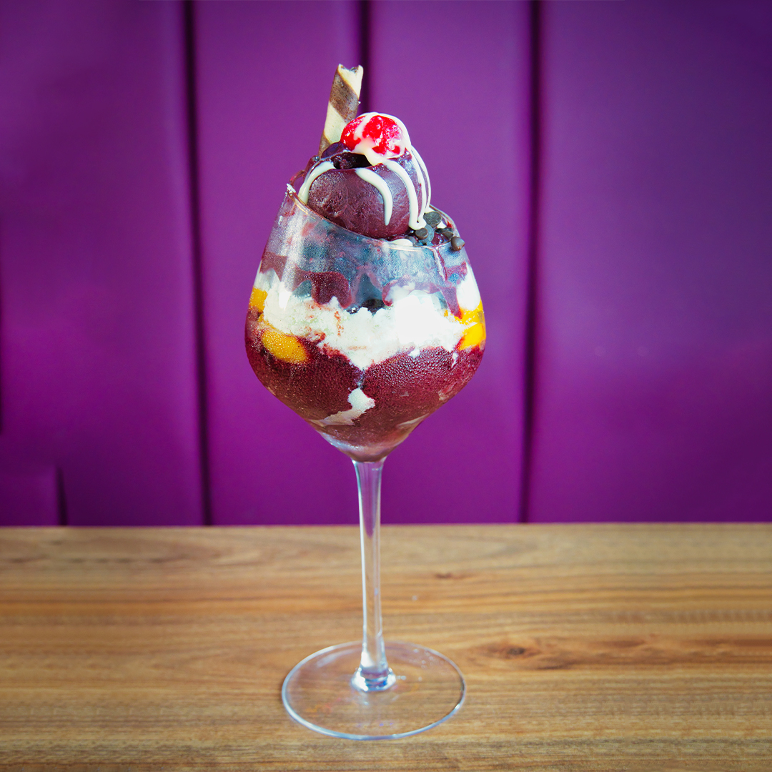 Helado de la casa a base de palma con un tono morado tipo sorbete