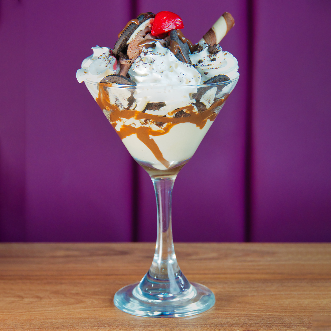Crema, chocorramo, queso, baileys, helado y salsas.