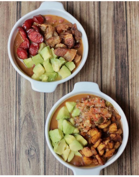 Disfruta de 2 cazuelas completas, cada una con frijoles, arroz blanco, arepa con hogao, chicharrón crocante, viruta de papa, platanito maduro y una porción extra de hogao. (No incluye bebida)